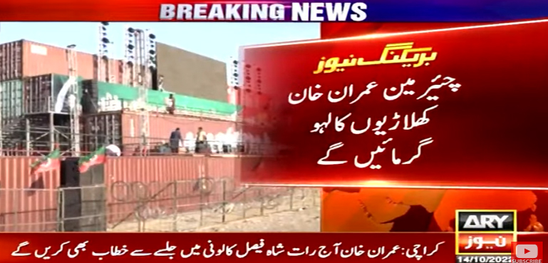اے آر وائی نیوز کے مطابق پاکستان تحریک انصاف آج کراچی میں سیاسی قوت کا مظاہرہ کرے گی، چیئرمین عمران خان کھلاڑیوں کا لہو گرمائیں گے، وہ سہ پہر 3 بجے کراچی بار میں وکلا سے بھی خطاب کریں گے۔