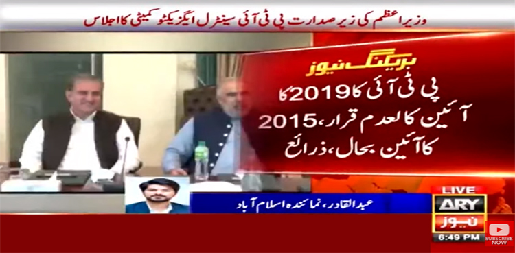 تحریک انصاف نے 2019 کا پارٹی آئین کالعدم قرار دیتے ہوئے 2015 کا آئین بحال کر دیا۔