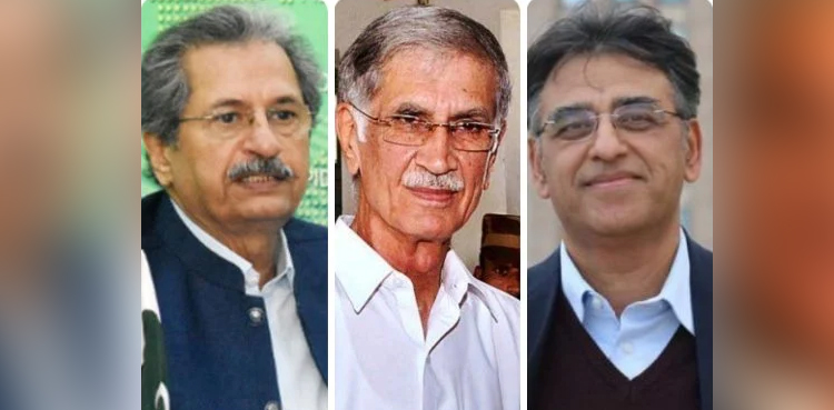 وفاقی وزراء اسد عمراورشفقت محمود سمیت دیگر پی ٹی آئی رہنما پیش ہوئے، جج نے کیس کے ابتداء پرگیارہ ملزمان کی حاضری لگانے کی ہدایت کی تاہم وفاقی وزیر اسدعمر حاضری لگانے کے بعد عدالت سے روانہ ہوئے۔
