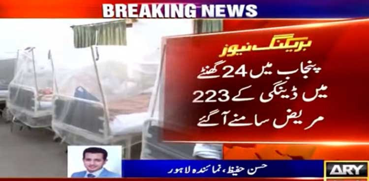لاہور : پنجاب میں ڈینگی کے مریضوں کی تعداد میں تیزی سے اضافہ ہورہا ہے، صوبے بھر میں ایک دن میں 223 کیسز سامنے آئے۔