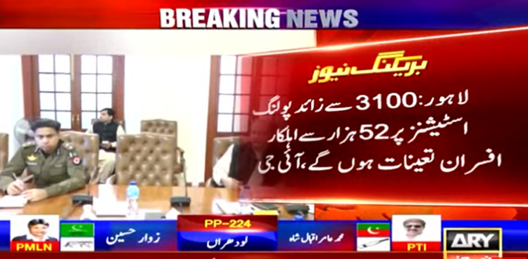 آئی جی پنجاب نے کہا کہ 20 حلقوں میں سیکیورٹی انتظامات یقینی بنائے جائیں گے، 3100 سے زائد پولنگ اسٹیشنز پر 52 ہزار سے اہلکار و افسران تعینات ہوں گے۔