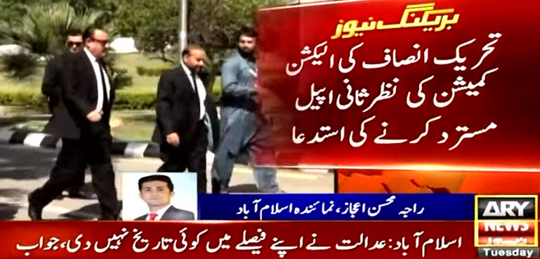 پی ٹی آئی کی جانب سے جمع کرائے گئے جواب میں کہا گیا ہے کہ نظرثانی اپیل میں الیکشن کمیشن نے نئے نکات اٹھائے ہیں جب کہ اس میں نئے نکات نہیں اٹھائے جاسکتے ہیں۔ الیکشن کمیشن اپنی اپیل میں نئے سرے سے دلائل دینا چاہتا ہے۔