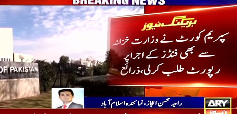 سپریم کورٹ نے اس معاملے پر وزارت خزانہ سے فنڈز کے اجرا پر رپورٹ طلب کر لی ہے اور اس کے ساتھ ہی اسٹیٹ بینک کو بھی لکھا گیا ہے۔