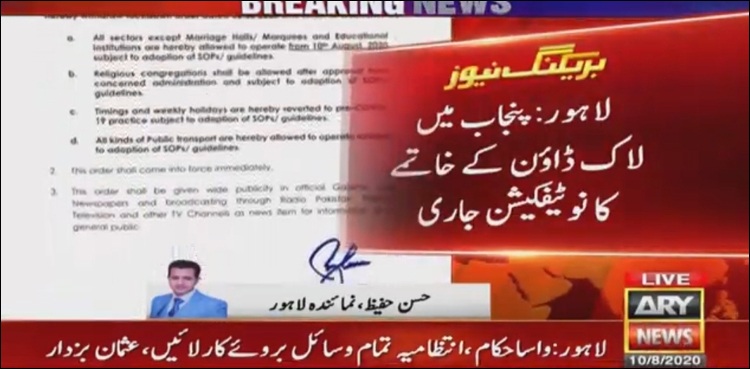 لاہور: حکومت پنجاب نے صوبے میں لاک ڈاؤن کے خاتمے کا باقاعدہ نوٹیفکیشن بھی جاری کر دیا۔