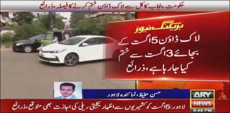 نمائندہ اے آر وائی نیوز کو ذرائع سے موصول ہونے والی اطلاعات کے مطابق پنجاب حکومت نے اسمارٹ لاک ڈاؤن کو پانچ اگست کے بجائے 3 اگست کو ختم کرنے کا فیصلہ کرلیا۔