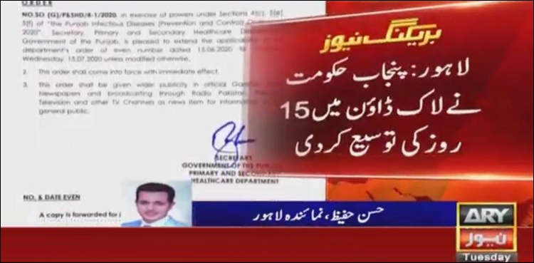 یاد رہے کہ پنجاب حکومت نے کرونا وبا کی روک تھام کے لیے صوبے بھر میں 16 جون سے پندرہ روز کا لاک ڈاؤن نافذ کیا تھا جس کی معیاد آج شام ختم ہورہی تھی۔