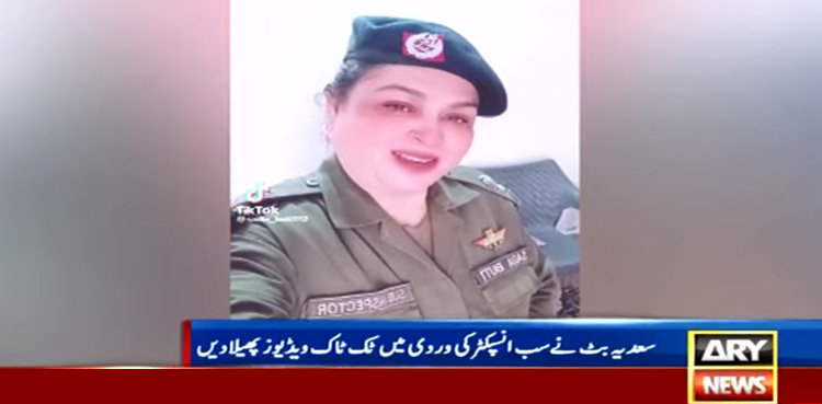 اے آر وائی نیوز کے مطابق سعدیہ بٹ نامی خاتون نے سب انسپکٹر کی وردی پہن کر ٹک ٹاک ویڈیو بنا کر سوشل میڈیا پر وائرل کردی۔