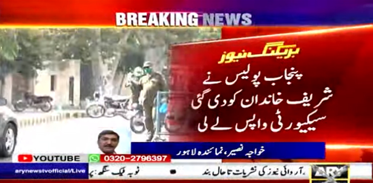 تفصیلات کے مطابق پنجاب پولیس نے شریف خاندان کو دی گئی سیکیورٹی واپس لے لی ، محکمہ داخلہ پنجاب کی جانب سے پولیس کی واپسی کی ہدایت دی گئی۔