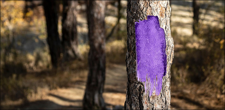 اگر آپ امریکا کی سیاحت پر نکلے ہوئے ہیں اور کسی جنگل میں گھومنے نکل گئے ہیں یا کسی ایسے علاقے میں جا نکلے ہیں جہاں درختوں، کہیں کسی باڑ یا کسی اور شے پر جامنی رنگ کا پینٹ نظر آ گیا ہے، تو وہیں رک جائیے۔