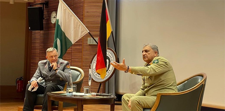 آئی ایس پی آر کے مطابق آرمی چیف جنرل نےجرمن کمانڈ اور اسٹاف کالج سےخطاب بھی کیا جس میں آرمی چیف نے پاکستان کی علاقائی، داخلی سیکیورٹی کے پہلوؤں، درپیش چیلنجز اور خطرات سے نمٹنے کے حوالے بات کی۔