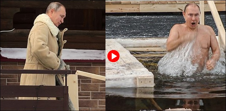 روسی میڈیا کی جانب سے پیوٹن کی ایک ویڈیو جاری کی گئی جس میں وہ منفی 17 ڈگری سینٹی گریڈ میں برفیلے پانی میں غوطہ لگا کر سالانہ تہوار منا رہے تھے۔