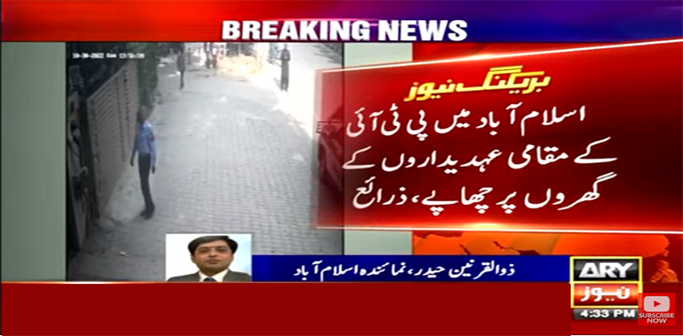 ذرائع کے مطابق اسلام آباد پولیس نے ٹی آئی کے مقامی عہدیداروں کے گھروں پر چھاپے مارے ہیں۔ پولیس کو لانگ