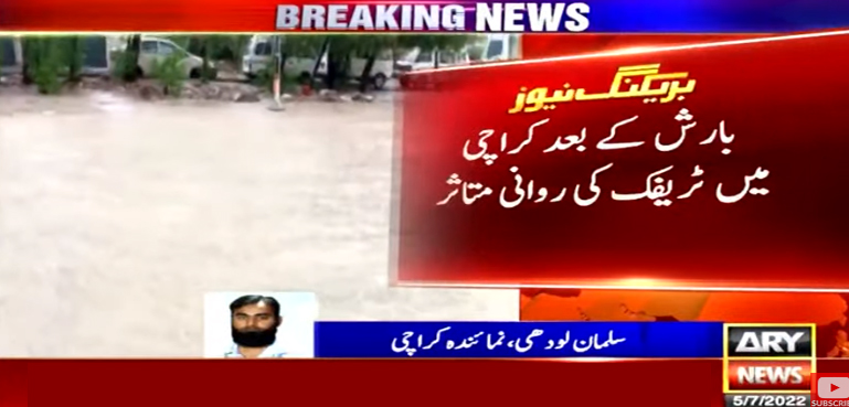 بارش کے باعث شارع فیصل، ایم اے جناح روڈ، یونیورسٹی روڈ، آئی آئی چندریگر روڈ سمیت مختلف کچی آبادیوں اور نشیبی علاقوں میں برساتی پانی بھی جمع، منگھوپیر روڈ پر گڑھا پڑ گیا ہے، جس کے باعث ٹریفک کی روانی متاثر ہوئی ہے جب کہ کئی علاقوں میں ٹریفک جام کی بھی اطلاعات ہیں۔