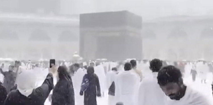 سامنے آنے والی ویڈیو میں دیکھا جاسکتا ہے کہ لوگ بارش سے لطف اندوز ہوتے ہوئے روحانی ماحول میں اللہ سے دعا کے لیے ہاتھ اٹھاتے ہوئے نظر آرہے ہیں۔