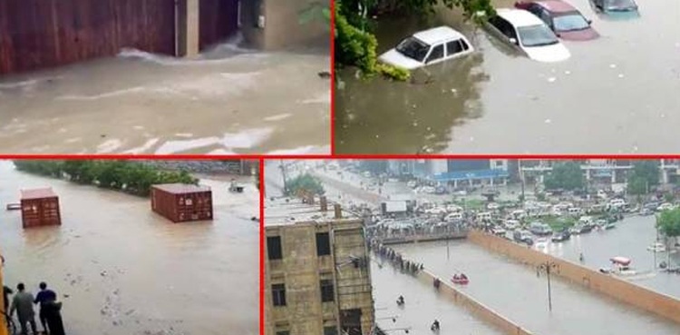 کراچی میں جمعرات کی صبح سے موسلادھار بارش کا سلسلہ دن بھر جاری رہا، محکمہ موسمیات کے مطابق شہر میں 200 ملی میٹر تک بارش ریکارڈ کی گئی جس کے بعد شہر کی اہم سڑکیں اور شاہراہیں ندی نالوں کا منظر پیش کر رہی ہیں۔