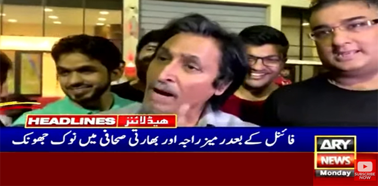 فائنل کے بعد چیئرمین پی سی بی رمیزراجا بھارتی صحافی پر برہم ہو گئے۔ رمیز راجا جواب دینے کے بعد غصے میں وہاں سے چلے گئے۔