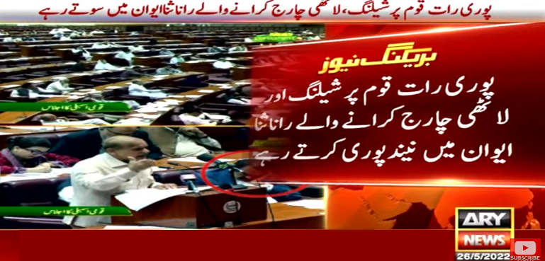 اے آر وائی نیوز کے مطابق پوری رات قوم پر شلینگ اور لاٹھی چارج کرانے والے وفاقی وزیر داخلہ رانا ثنا اللہ قومی اسمبلی کے اجلاس میں اپنی نیند پوری کرتے رہے۔