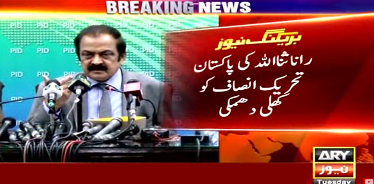 اسلام آباد: وفاقی وزیر برائے داخلہ رانا ثنا اللہ نے تحریک انصاف کو دھمکی دے دی۔