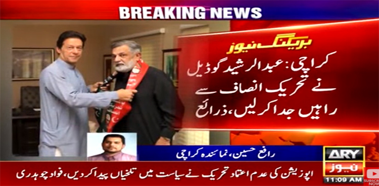 کراچی: وزیراعظم عمران خان کی پالیسیوں سے دلبرداشتہ عبدالرشیدگوڈیل نے تحریک انصاف سے راہیں جدا کرلیں۔