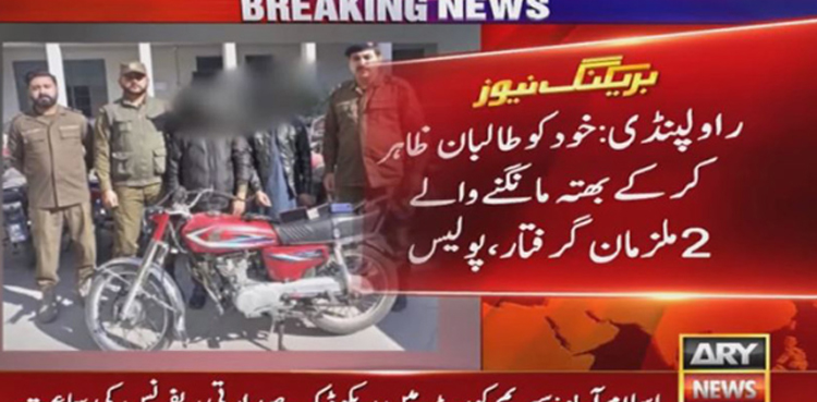 تفصیلات کے مطابق راولپنڈی پولیس نے خود کو طالبان ظاہر کر کے بھتہ مانگنے والے 2 ملزمان کو گرفتار کرلیا۔