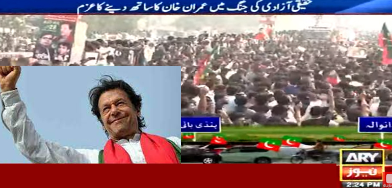 حقیقی آزادی مارچ چوتھے روز پی ٹی آئی چیئرمین عمران خان مارچ کی قیادت کرنے کیلیے کامونکی سے گوجرانوالہ کے لیے روانہ ہوگیا۔