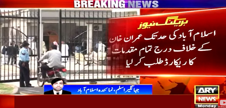 اسلام آباد ہائیکورٹ نے وفاقی دارالحکومت کی حد تک پی ٹی آئی چیئرمین اور سابق وزیراعظم عمران خان کے خلاف درج تمام مقدمات کا ریکارڈ طلب کرلیا ہے۔