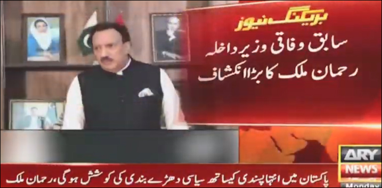 رحمان ملک نے کہا کہ ’پاک فوج کے خلاف جو زبان استعمال کی جارہی ہے وہ ٹھیک نہیں، فوج کے خلاف اس طرح کے بیانات اور تقاریر نہیں ہونی چاہیں کیونکہ یہ پاکستان کے خلاف سازش ہے‘۔