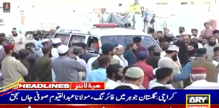 تفصیلات کے مطابق کراچی کے علاقے گلستان جوہر بلاک 9 میں نامعلوم ملزمان کی جانب سے فائرنگ کے نتیجے میں مولانا عبد القیوم صوفی جاں بحق ہوگئے۔