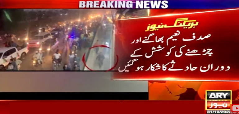 فوٹیج میں صدف نعیم کو لانگ مارچ کے دوران کنٹینر کے ساتھ بھاگتے ہوئے دیکھا جاسکتا ہے اور اسی دوران وہ کنٹینر پر چڑھنے کی کوشش کے دوران گر کر جاں بحق ہوئیں۔
