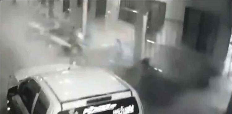 ویڈیو میں دیکھا جاسکتا ہے کہ تین منزلہ عمارت اچانک گر جاتی ہے، حادثے کے سبب پارکنگ میں کھڑی موٹر سائیکلیں تباہ ہوجاتی ہیں۔