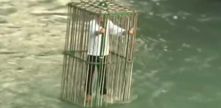 مکینوں کی جانب سے پنجرے کو صرف ایک سیکنڈز کے لیے دریا میں ڈبویا جاتا ہے جس میں سیاست دان کو ان کی غلطی کا احساس دلایا جاتا ہے۔
