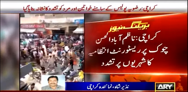 اے آر وائی نیوز کے نمائندے کی رپورٹ کے مطابق شہر قائد کے علاقے ناظم آباد الحسن چوک پر واقع ریسٹورنٹ انتظامیہ کی جانب سے خواتین اور مرد کو تشدد کا نشانہ بنانے کا واقعہ پیش آیا ہے۔