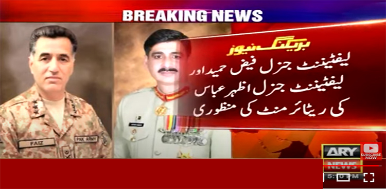 وفاقی کابینہ نے لیفٹیننٹ جنرل فیض حمید اور لیفٹیننٹ جنرل اظہرعباس کی ریٹائرمنٹ کی منظوری دے دی۔