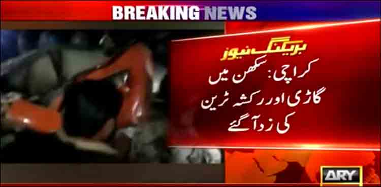 تفصیلات کے مطابق کراچی کے علاقے سکھن میں جمعہ گوٹھ اسٹیشن کے قریب گاڑی اور رکشہ ٹرین کی زد میں آئے ہیں جس کے باعث تین افراد زخمی ہوئے ہیں تاہم کسی ہلاکت کی اطلاع موصول نہیں ہوئی۔