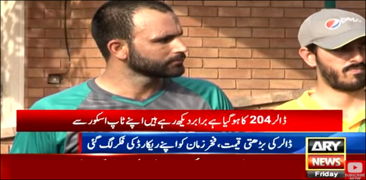 اے آر وائی نیوز کے مطابق پی سی بی کی جانب سے جاری کنڈیشننگ کیمپ میں مصروف پاکستان کے مایہ ناز اوپننگ بلے باز فخر زمان سے صحافی نے سوال کیا کہ امریکی ڈالر 204 روپے تک پہنچ گیا ہے آپ کا ون ڈے ریکارڈ 210 رنز کا ہے کیا آپ ڈالر کو اپنا ریکارڈ توڑتے دیکھ رہے ہیں۔