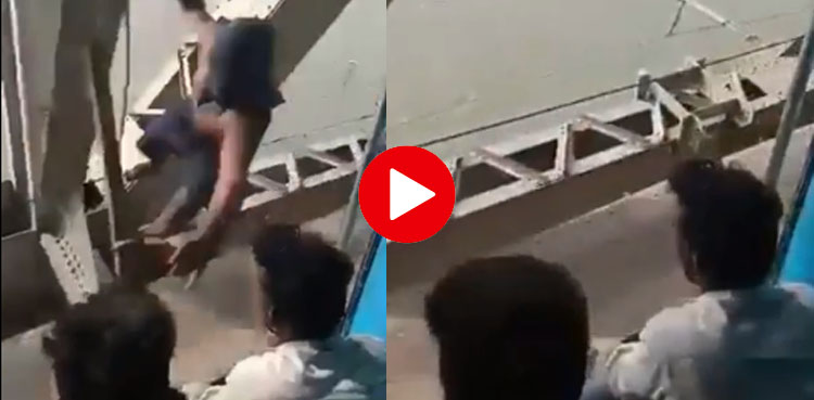پل کی ریلنگ سے لٹکتے ڈاکو پلک جھپکتے ہی مسافروں سے فون چھین لیتے ہیں اور چلتی ٹرین سے کچھ نہیں کر پاتے، واقعے پر پولیس کا بیان تاحال سامنے نہیں آسکا ہے۔