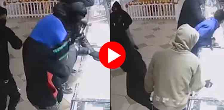 رپورٹ میں بتایا گیا کہ واقعے کی ویڈیو کی مدد سے پولیس ملزمان کی تلاش میں ہے۔ مناظر میں دیکھا جاسکتا کہ ملزمان بلاخوف وخطر دکان میں داخل ہوئے اور ہتھوڑے سے شیشے توڑے جہاں زیورات موجود تھے۔