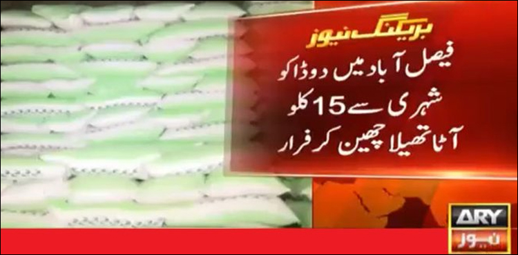 فیصل آباد: پنجاب کے شہر فیصل آباد میں موٹر سائیکل سوار ڈاکو شہری سے آٹے کا تھیلا چھین کر فرار ہوگئے۔