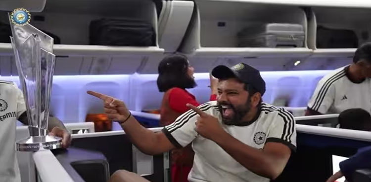 بھارتی کرکٹرز ٹی ٹوئنٹی ورلڈکپ جیتنے کے بعد وطن واپس آتے ہوئے 16 گھنٹے طویل فلائٹ میں کیا کرتے رہے، اس کی دلچسپ ویڈیو وائرل ہوگئی۔