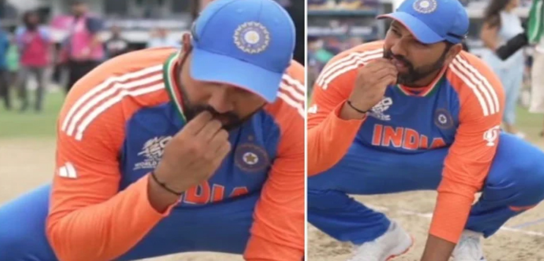 روہت شرما نے کہا کہ ان کا یہ عمل اسکرپٹڈ نہیں تھا بس اچانک ہوگیا، میں جب پچ پر گیا تو اس لمحے کو محسوس کر رہا تھا جب ہم چیمپئن بنے اور اس لمحے کے ساتھ پچ اور گراؤنڈ کو ہمیشہ یاد رکھنے کے لیے میں نے مٹی کو اپنے جسم کا حصہ بنا لیا۔