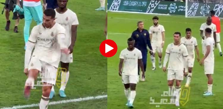 النصر کے اسٹار فٹبالر کرسٹیانو رونالڈو کی ویڈیو سوشل میڈیا پر وائرل ہورہی ہے جس میں وہ ٹیم کی شکست پر غصے میں آگئے اور اپنا غصہ پانی کی بوتلوں پر نکال دیا۔