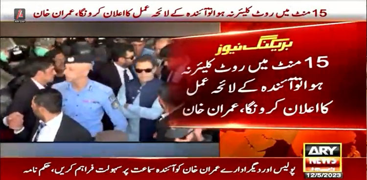 تفصیلات کے مطابق عمران خان نے کہا ہے کہ ضمانت ملنے کے بعد کئی گھنٹے سے راستے کھلنے کا انتظارکررہا ہوں، انہوں نے اسلام آباد کی مقامی انتطامیہ کو الٹی میٹم دیتے ہوئے کہا کہ15منٹ میں راستے کلیئر نہ کیا گیا تو آئندہ کے لائحہ عمل کا اعلان کروں گا۔