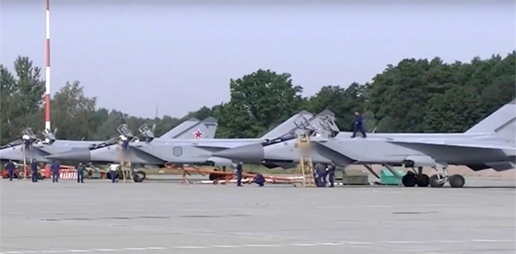 روس کی وزارت دفاع نے کہا کہ کنزال ہائپرسونک میزائلوں کے ساتھ تین MiG-31 لڑاکا طیارے "اسٹریٹجک ڈیٹرنس کے اضافی اقدامات” کے حصے کے طور پر چکالوسک ایئربیس پر پہنچے ہیں اور انہیں "چوبیس گھنٹے جنگی ڈیوٹی” پر رکھا جائے گا۔