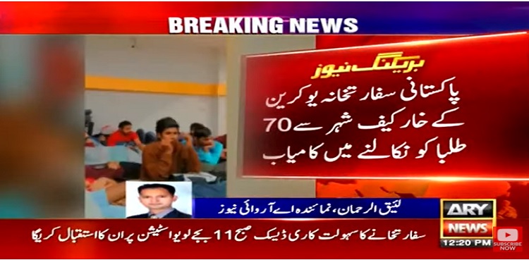 اسلام آباد: پاکستانی سفارتخانہ یوکرین کےخار کیف شہر سے70 طلبا کو نکالنے میں کامیاب ہوگیا ہے۔