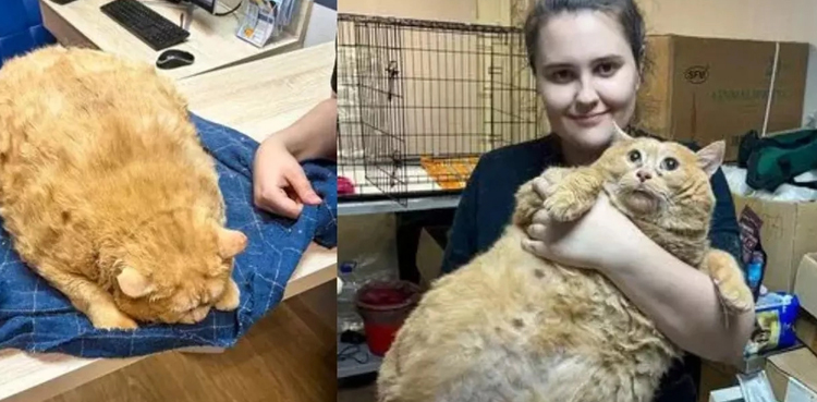 17 کلو وزنی بلی جس کا وزن ایک انسانی بچے کے برابر ہے کو اسپتال کے عملے نے بچایا اور اب وہ انتہائی ضروری خوراک پر ہے۔