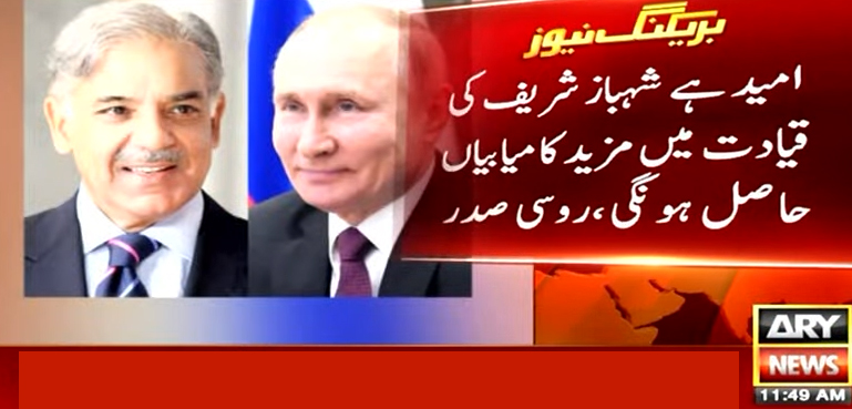 روسی صدر نے اپنے پیغام میں دونوں ممالک کے درمیان دوستانہ تعلقات کو سراہا ہے اور امید ظاہر کی ہے کہ شہباز شریف کی قیادت میں مزید کامیابیاں حاصل ہوں گی۔