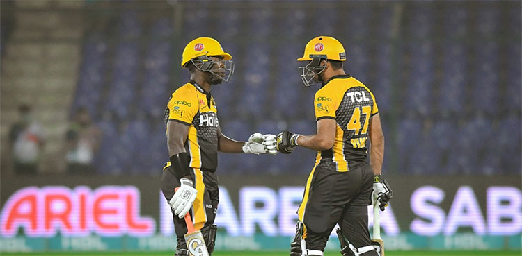 مطلوبہ ہدف کے تعاقب میں پشاور زلمی نے بیٹنگ کا آغاز کیا تو اس کی ابتدائی دو وکٹیں 27 کے مجموعی اسکور پر گرگئیں، اس وقت پشاور زلمی کی اننگز کے ابتدائی 4 اوورز بھی گزرچکے تھے۔ کامران اکمل 3 اور ٹام کوہلر کیڈمور 4 رنز بناکر آؤٹ ہوئے۔