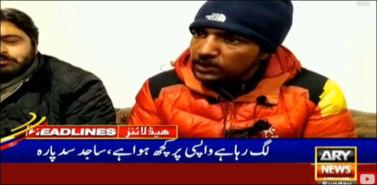 اے آر وائی نیوز کی رپورٹ کے مطابق کوہ پیما ساجد سدپارہ نے اسکرو پہنچنے پر میڈیا سے گفتگو کرتے ہوئے کہا کہ مجھے یقین ہے کہ ٹیم نے کے ٹو سر کرلیا ہے، لگ رہا ہے واپسی پر کوئی حادثہ ہوا ہے، والد کے زندہ بچنے کے امکانات کم ہیں، لاش تلاش کی جائے۔