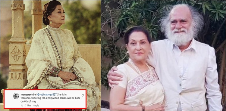 انسٹاگرام پوسٹ پر ایک مداح کے سوال کا جواب دیتے ہوئے منظر صہبائی نے بتایا کہ ’ثمینہ احمد ہالی ووڈ فلم کی شوٹنگ کے لیے تھائی لینڈ میں مصروف ہیں‘۔