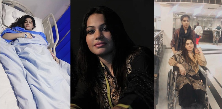 صنم ماروی نے اس پوسٹ کے ساتھ اپنی دو تصاویر بھی شیئر کیں جن میں سے ایک میں وہ وہیل چیئر پر بیٹھی جبکہ دوسری میں اسپتال کے بیڈ پر لیٹی ہوئیں تھیں۔